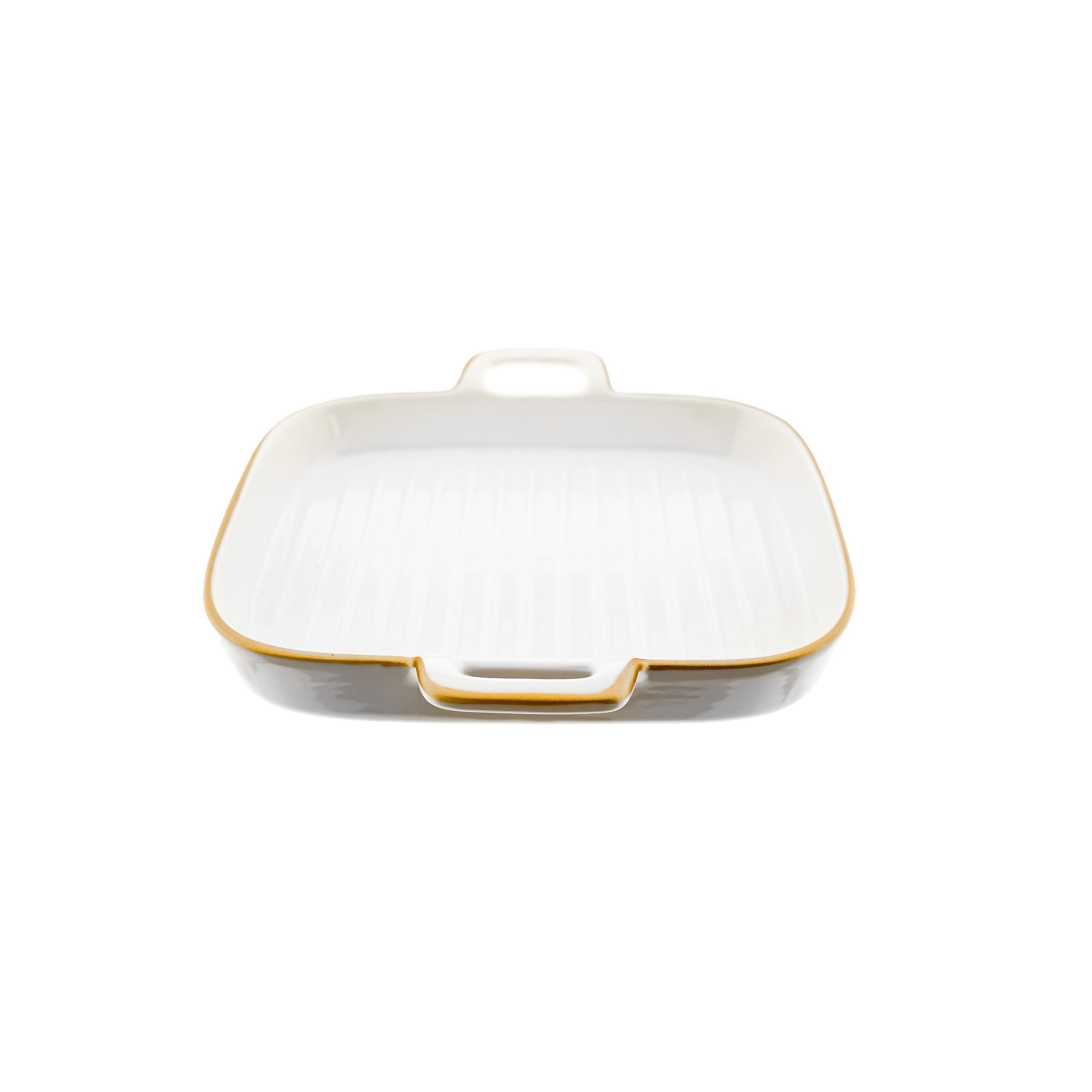 Dank der praktischen Griffe lässt sich der Teller bequem servieren und anrichten. Die fein strukturierte Oberfläche im Inneren sorgt für eine elegante Präsentation mit dezentem Design. Ideal für besondere Anlässe, festliche Tafeln oder als stilvolles Alltagsgeschirr.