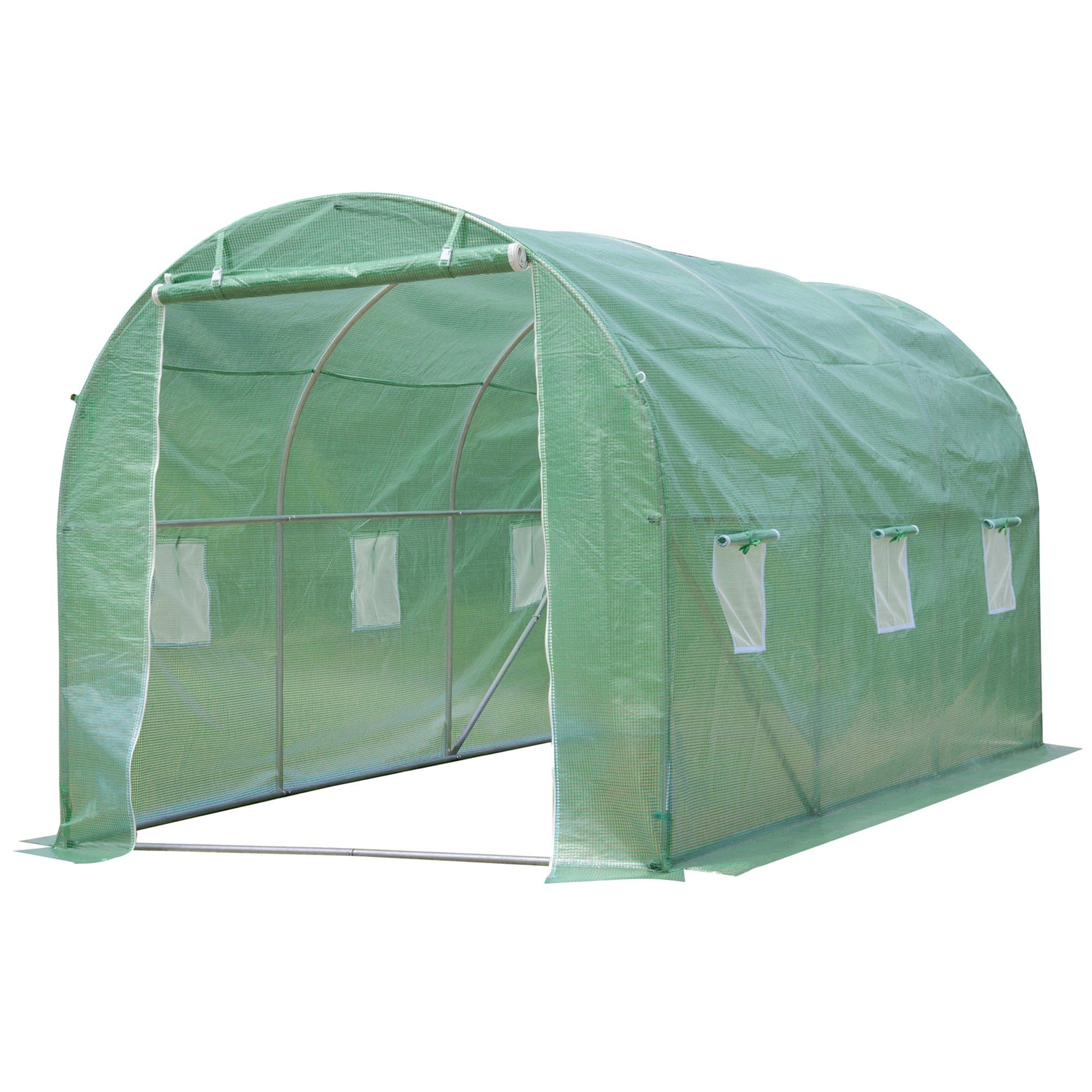 Das stabile Stahlgestänge bietet einen festen Stand und die Außenhaut aus halbtransparenter, grüner PE-Folie schützt Ihre Zuchtergebnisse vor diversen Umwelteinflüssen und schafft ein optimales Klima, indem sich die Luft im Innenraum erwärmen kann.