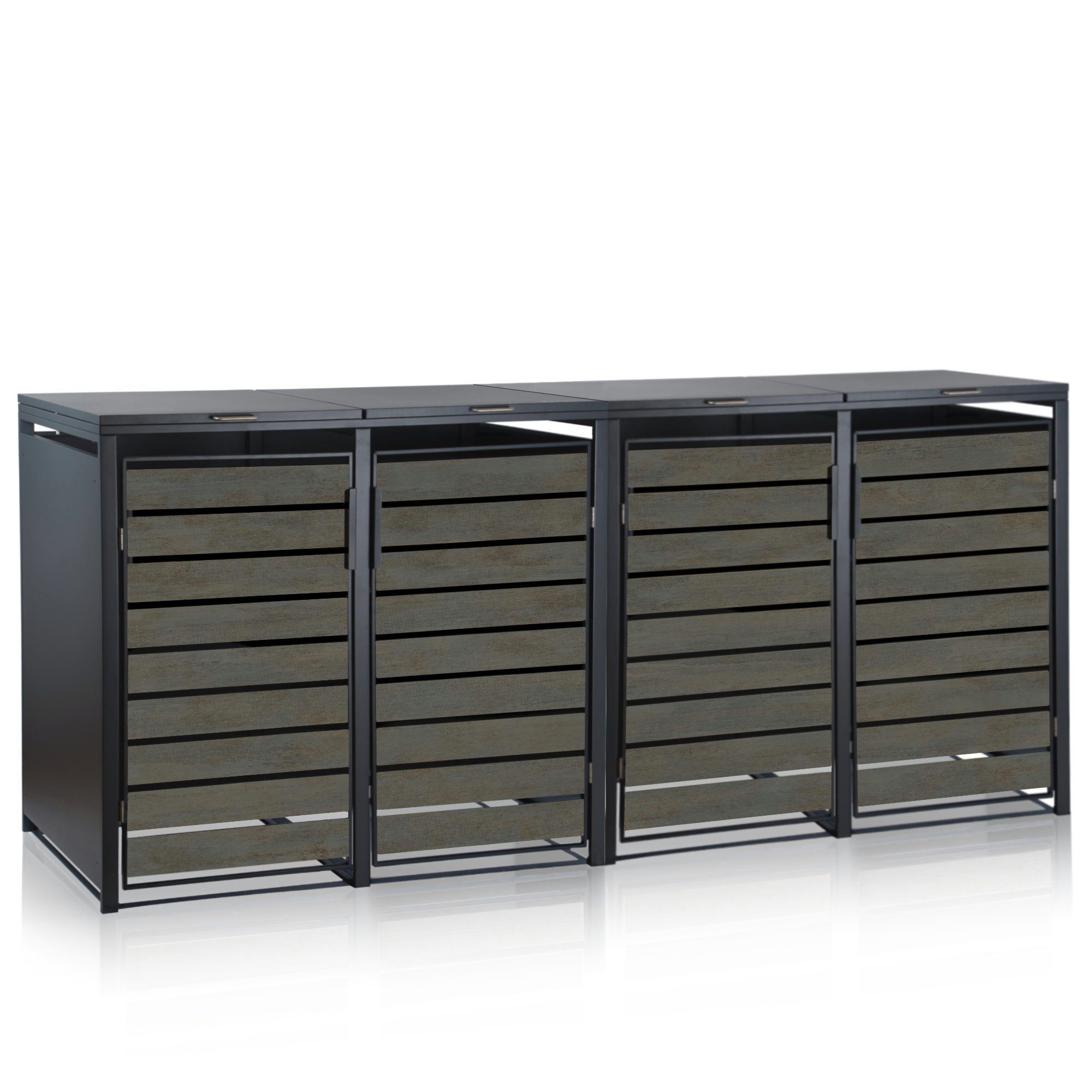 Zelsius Mülltonnenbox-Set für vier Mülltonnen | Anthrazit RAL 7016 | Tür in dunkelgrauer Holzoptik