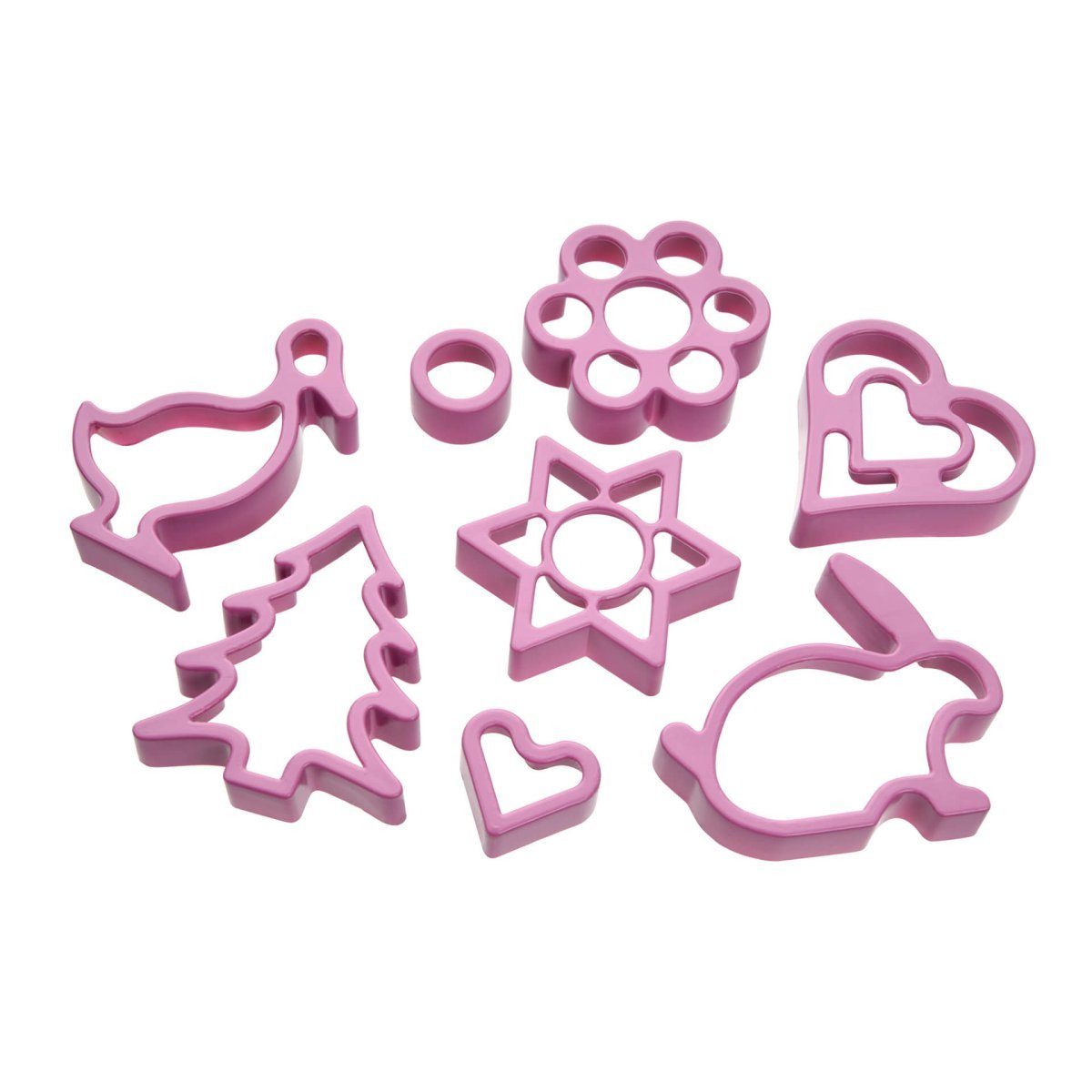 Das Set besteht aus 8 Ausstechern in den speziellen Ostermotiven wie Hase und Gans und den speziellen Weihnachtsmotiven wie Stern oder Tannenbaum. Abgerundet wird das Set durch ganzjährig verwendbare Formen wie Kreis, Blume und Herz. Die Ausstecher sind aus Kunststoff und in verschiedenen Größen geformt, so dass man sie auch für mehrschichtige Dekor-Plätzchen verwenden kann.