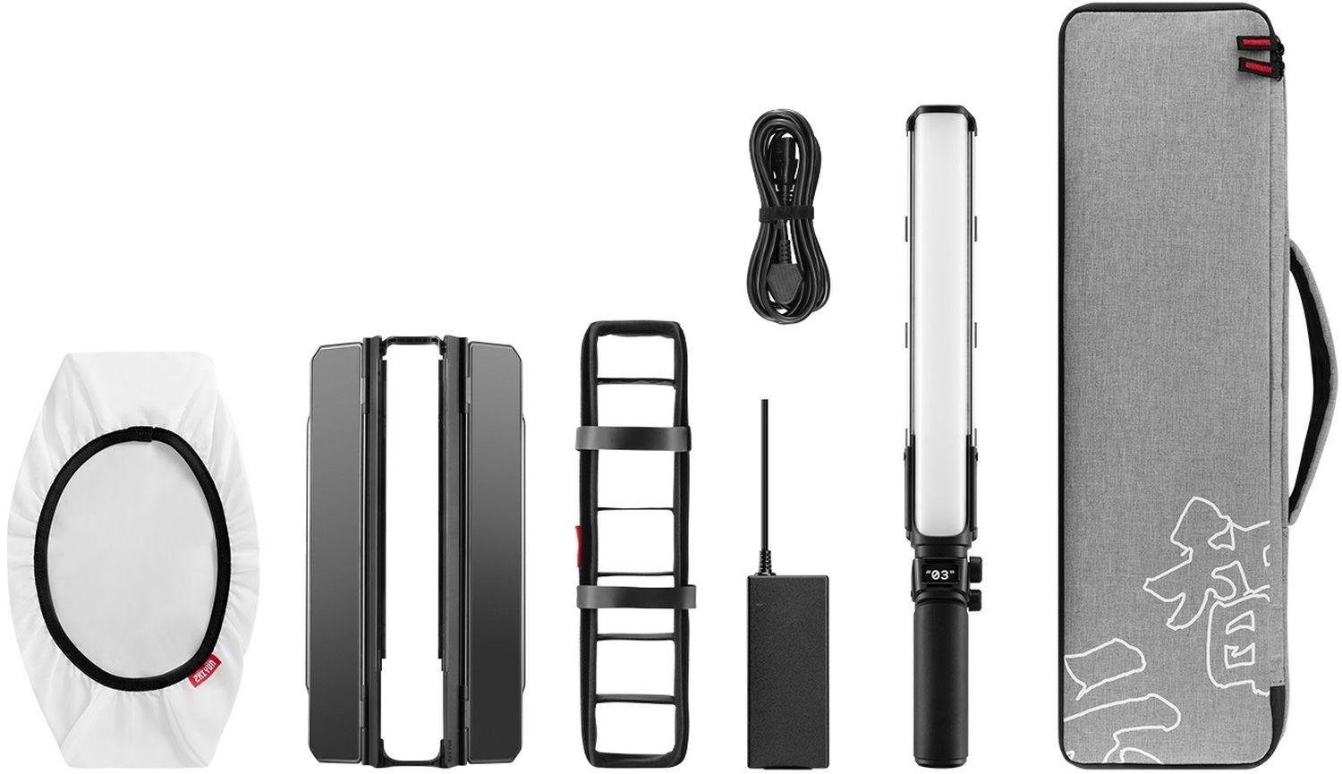 Der Fiveray V60 ist ein kleiner Leuchtstab mit 60 W Leistung. Produktbilder zeigen optionales Zubehör und Anwendungsbeispiele.