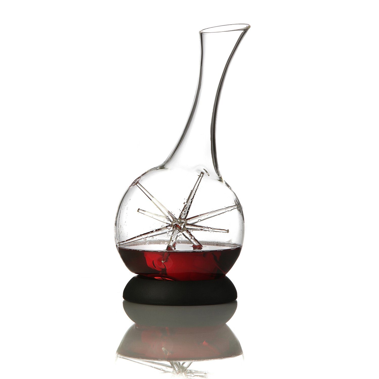 Innovative Belüftungstechnik für optimale Weinreifung: Die filigranen Strahlen des zentralen Sterns im Dekanter sind nicht nur ästhetisch ansprechend, sondern auch funktional konzipiert, um den Wein sanft mit Sauerstoff zu versorgen. Diese innovative Belüftungstechnik sorgt für eine gleichmäßige Entwicklung des Weins, indem sie einen feinen Sauerstofffilm unter und im Wein bildet. Dadurch entfaltet der Wein sein volles Aroma, was zu einem verbesserten Trinkerlebnis führt.