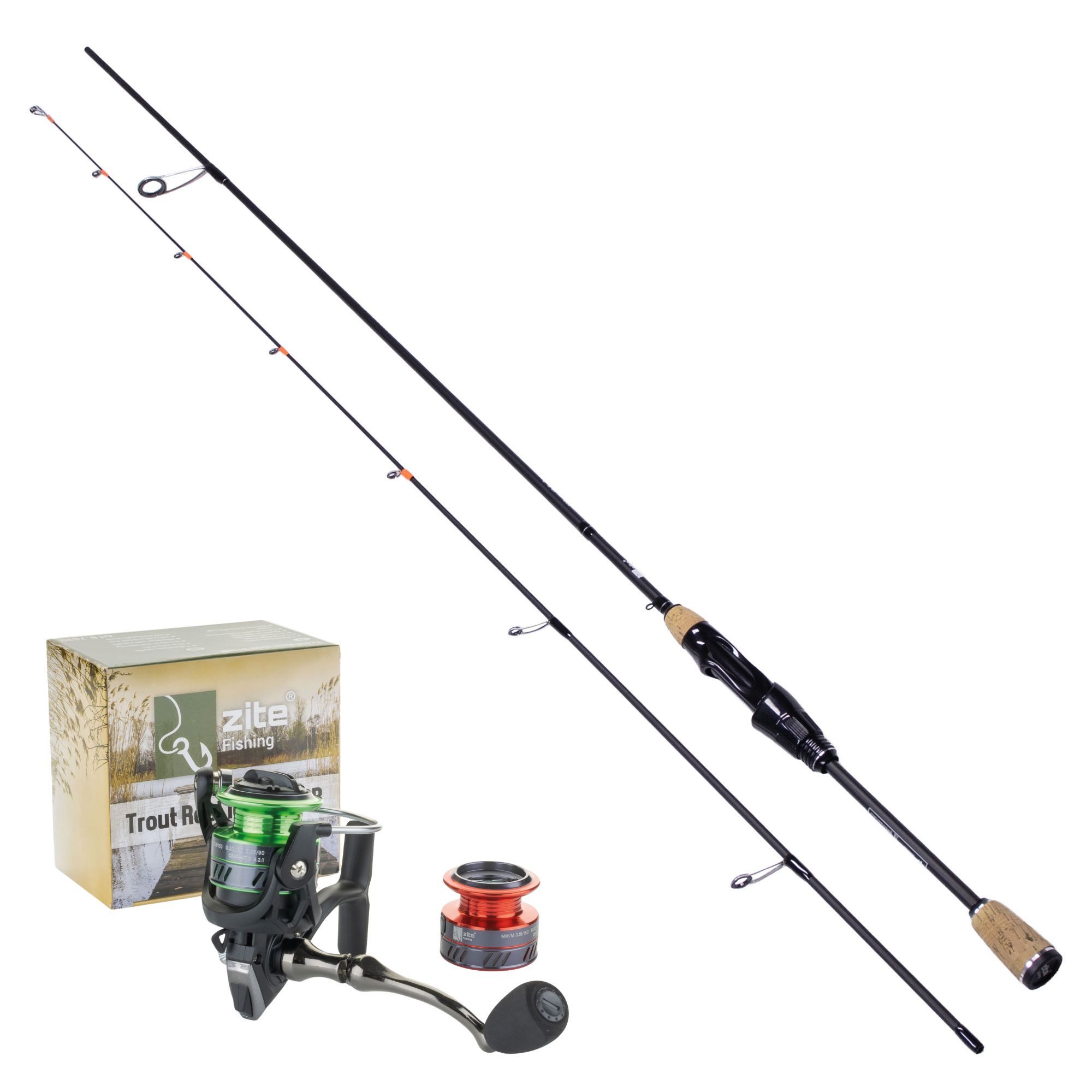 Mit dem Ultra Light Forellen-Set von Zite Fishing erhalten Angler eine fein abgestimmte Kombination für das präzise Forellenangeln an See, Teich oder Bach. Die 2 m lange Solid Strike Rute mit ultraleichtem Vollcarbon-Tip überzeugt durch exzellente Rückmeldung und ein geringes Eigengewicht von nur 117 g. Sie wurde speziell für das Angeln mit leichten Ködern wie Gummiködern, Spoons oder Naturimitaten entwickelt und bringt auch vorsichtige Bisse zuverlässig ans Handgelenk. Dank der kompakten Zweiteilung ist die Rute mit einer Transportlänge von 106 cm leicht zu verstauen und flexibel einsetzbar – ideal für gezielte Ansitze in stehenden oder langsam fließenden Gewässern. Das Wurfgewicht von 1–5 g deckt die gängigsten Techniken des modernen UL-Fischens ab und ermöglicht ein besonders feinfühliges Köderspiel. Abgerundet wird das Set durch die 200 g schwere Trout Reel 1000 Spinnrolle mit Aluminiumspule, 3+1 Kugellagern und fein justierbarer Frontbremse. Die ruhige Übersetzung von 5,2:1 sorgt für gleichmäßigen Lauf und zuverlässiges Handling – insbesondere bei leichten Montagen und feiner Schnurführung. Durch das ausgewogene Zusammenspiel von Rute und Rolle eignet sich das Set optimal für alle, die Wert auf Präzision, Leichtigkeit und Drillkontrolle beim Forellenangeln legen. Ob am gut besetzten Forellenteich oder im klaren Bachlauf: Diese UL-Kombi bietet die nötige Feinfühligkeit und Qualität, um moderne Forellentechniken wirkungsvoll umzusetzen – ganz ohne unnötiges Gewicht, aber mit maximalem Spaß am Wasser.