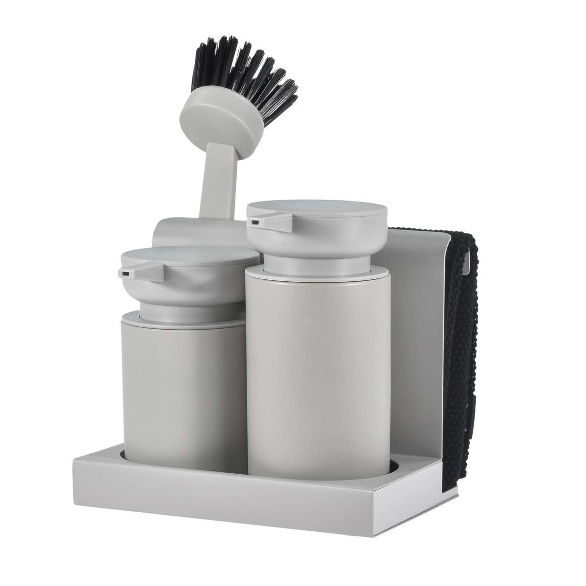 Lieferumfang | 1 Halterung, 2 Spülmittelspender, 1 Spülbürste, 1 Spültuch |