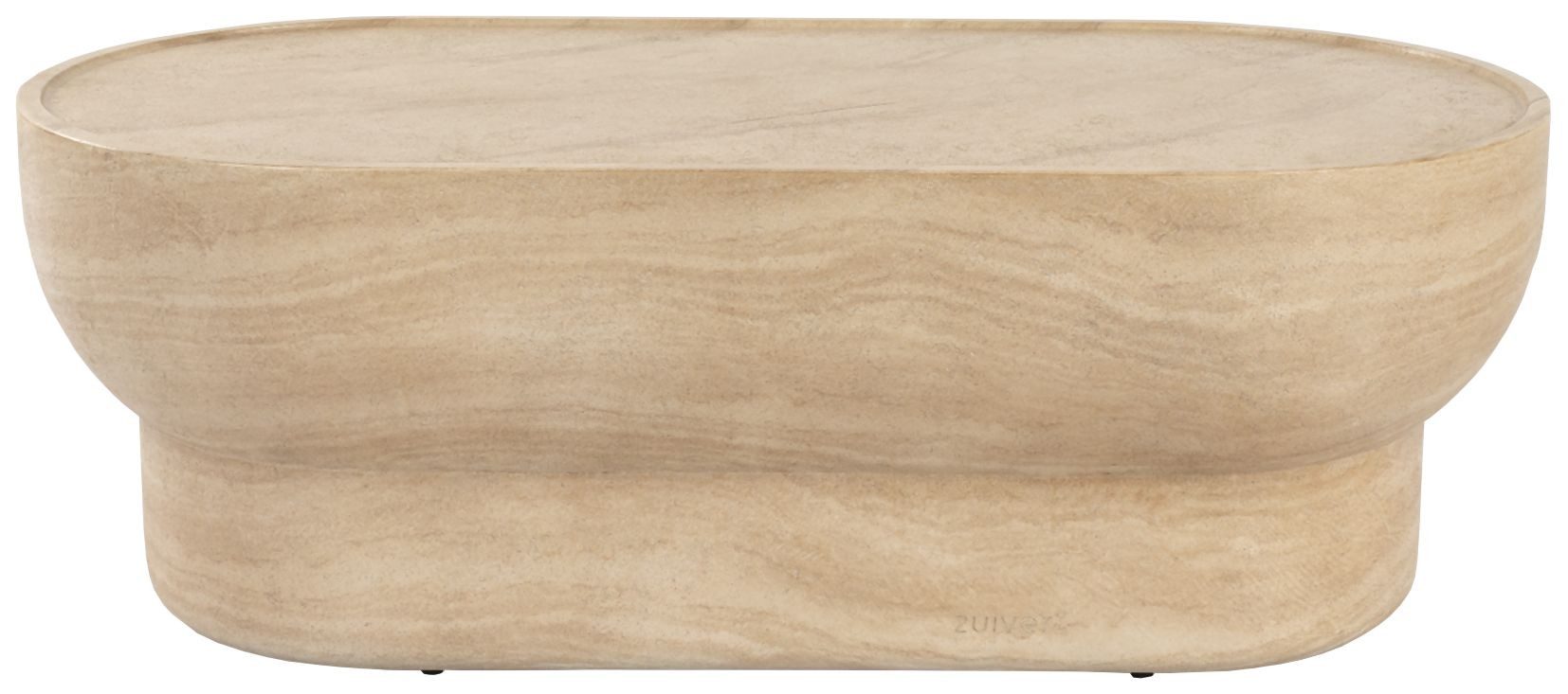 Hergestellt aus Beton und bemalt für einen Travertin-Look ist der Couchtisch in zwei Größen und verschiedenen Formen erhältlich.