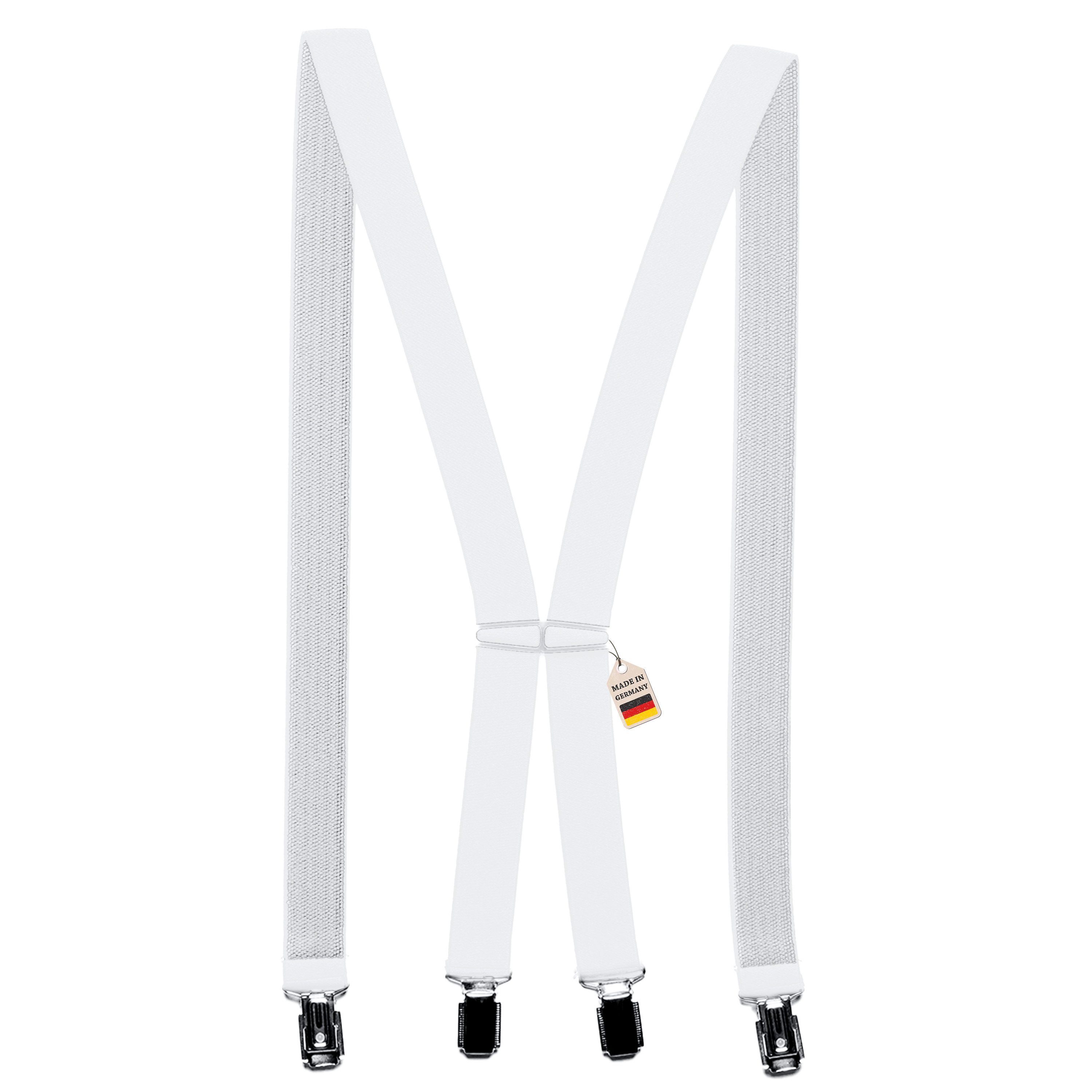Diese 2,5 cm breiten Hosenträger in X-Form vereinen Stil und Funktionalität für Damen und Herren. Die robusten Clips halten jede Hose sicher, während der Polyester-Elastan-Mix für Flexibilität sorgt. Hergestellt in Deutschland, überzeugen diese Hosenträger durch hohe Qualität und Langlebigkeit. Größenverstellbar und komfortabel – die ideale Wahl für jedes Outfit. Hosenträger - X-Form Hosenträger - Hosenträger Herren - Hosenträger Damen - Hosenträger Unisex - Hosenträger flexibel - Hosenträger größenverstellbar - Hosenträger 2,5 cm breit - Made in Germany Hosenträger - Hosenträger Polyester Elasthan - Hosenträger mit 4 Clips - Hosenträger robust - Hosenträger für Hosen - Deutsche Qualität Hosenträger - Hosenträger langlebig - Klassische Hosenträger