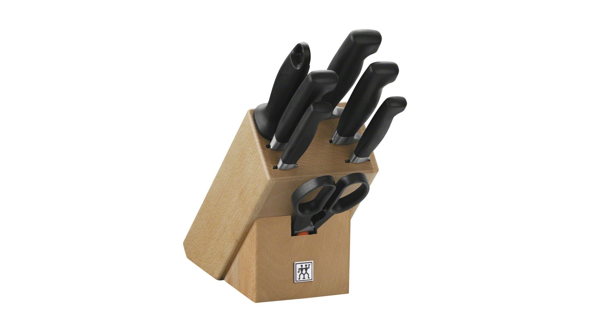 ZWILLING **** VIER STERNE Messerblockset 8-tlg, Natur Macht dein Küchenleben leichter. Robuste Klinge Ergonomie beim Schneiden Stabil und korrosionsbeständig Langlebige Qualität Made in Germany Beschreibung Diese geschmiedete Vier Sterne Serie begeistert bereits seit 1976 durch Langlebigkeit, Sicherheit und Ergonomie und ist bis heute die meistverkaufte ZWILLING Messerserie weltweit. Schneiden ohne Kompromisse: Das Messerblockset aus der Serie VIER STERNE von ZWILLING begleitet dich von nun an in der Küche und steht dir mit wichtigen Schneideigenschaften, wie Ergonomie, Schärfe und Schneidhaltigkeit zur Seite. Der fugenlos verarbeitete Griff aus Kunststoff ist ergonomisch geformt, sodass das Küchenmesser besonders angenehm in der Hand liegt. Die FRIODUR Klinge wird in einem speziellen Verfahren eisgehärtet. Das Ergebnis ist ein Messer, das besonders schneidhaltig und flexibel ist. Qualität hergestellt in Deutschland – dafür steht dieses Messer mit all seiner Hochwertigkeit. FRIODUR eisgehärtete Klinge: besonders lange Haltbarkeit der Schneide und Korrosionsbeständigkeit Rostfreier Spezialstahl, ZWILLING Sonderschmelze: stabil, korrosionsbeständig und zugleich flexibel SIGMAFORGE Messer: aus einem Stück geschmiedet Fugenloser Übergang zwischen Griff und Klinge. Ergonomischer Griff aus Kunststoff: Für ermüdungsfreies und sicheres Arbeiten mit dem Messer. Enthält 1 Spick- und Garniermesser (10 cm), 1 Universalmesser (13 cm), 1 Fleischmesser (16 cm), 1 Kochmesser (20 cm), 1 Brotmesser (20 cm), 1 Vielzweckschere, 1 Wetzstahl, 1 Block Eigenschaften Farbe: Natur Material: Sonderschmelze Herstellungsart: geschmiedet Anzahl Schlitze: 7 Lieferumfang: 8 Grifffarbe: Schwarz Griffmaterial: Kunststoff Abmessungen Gewicht netto: 2,58 kg Produktlänge: 36,50 cm Produktbreite: 11,50 cm Produkthöhe: 15,00 cm