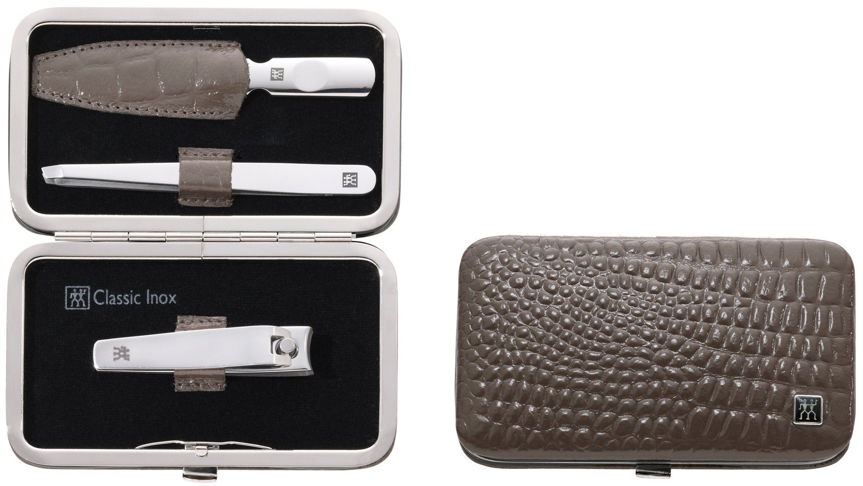 Zwilling Rahmen-Etui,3-tlg. ZWILLING® Classic Inox 107 x 65 mm Mit der neu entwickelten Manicure-Serie ZWILLING Classic Inox machen Sie Ihre Körperpflege zum individuellen Wellness-Programm. ZWILLING Classic Inox weiß mit edlen, polierten Instrumenten und hochwertigen Lederetuis auch optisch zu gefallen. Das umfangreiche Меню enthält alle Instrumente, die Sie sich für Ihre tägliche Körperpflege wünschen.