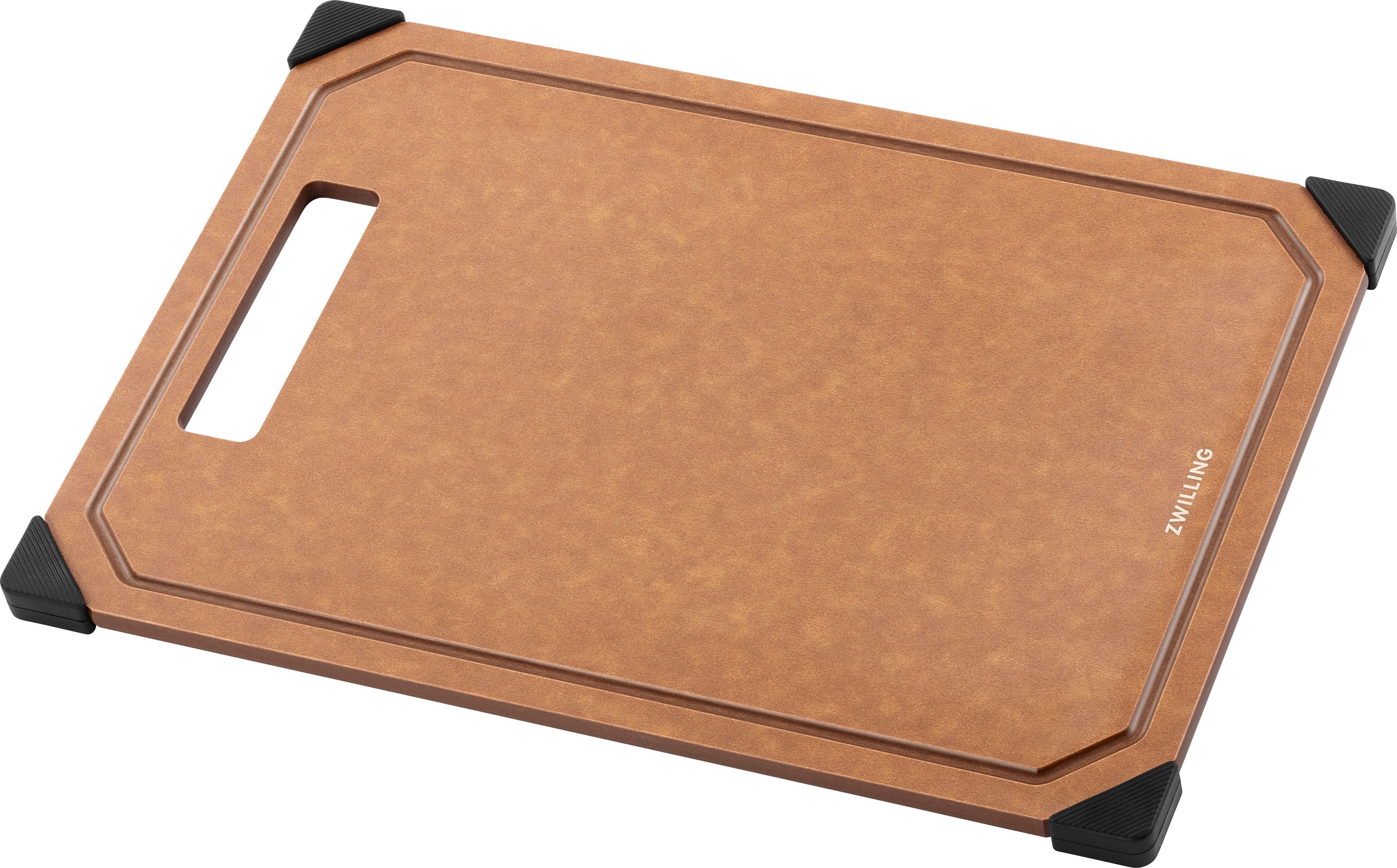 Modernes Design und Funktionalität treffen im neuen Schneidbrett von ZWILLING aufeinander. Der Holzstoffverbund macht das Schneidbrett unempfindlich und schonend für deine Messer. Das Schneidbrett ist besonders dünn und somit sehr platzsparend und leicht zu handhaben. Die Saftrille auf einer Seite des Brettes vermeidet, dass Saft beim Schneiden überläuft. Dank der Anti-Rutsch-Silikonfüße hat das Brett einen sicheren Halt auf jeder Oberfläche und bleibt es bei Benutzung immer sicher auf der Arbeitsplatte liegen. Das Schneidbrett ist spülmaschinengeeignet und leicht zu reinigen.