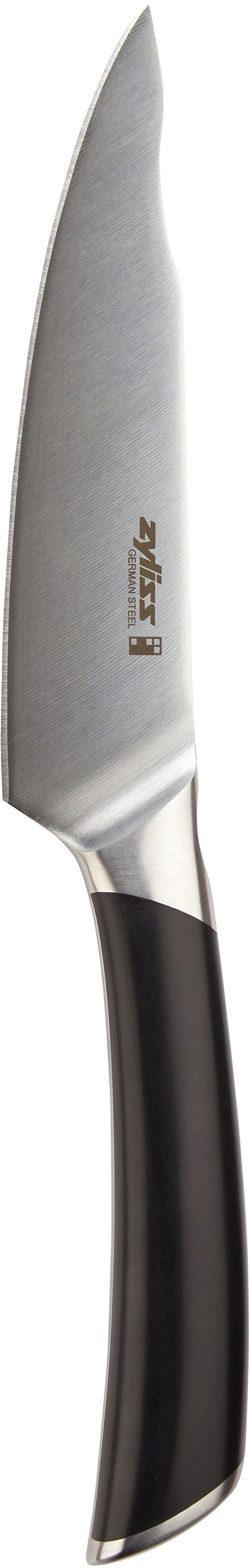 Das Comfort Pro Allzweckmesser hat eine 14cm lange eisgehärtete 15° scharfe Klinge aus deutschem Edelstahl und ist einfach zu handhaben es hat die perfekte Klingengrösse für alltägliche Zubereitungsaufgaben. Das schlanke Klingenprofil gleitet mit Leichtigkeit durch Obst und Gemüse. Der ergonomische Griff wurde für höchsten Komfort beim täglichen Gebrauch entwickelt. Er liegt perfekt in der Hand und verfügt über ein sich verjüngenden Kropf, der beim Gebrauch einen festen Halt ermöglicht. Die Fingerauflage an der Klinge bietet eine bequeme Position zum Platzieren des Zeigefingers beim präzisen Schneiden. Die eisgehärtete Klinge bleibt nachweislich länger scharf. Der robuste deutsche Edelstahl ist auf Langlebigkeit ausgelegt und hält selbst den härtesten Belastungen stand.
