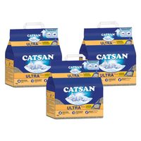 CATSAN Katzenstreu Ultra Plus Klumpstreu 3 x 10l (Vorrats-Set), für schnelle & feste Klumpenbildung gegen Gerüche