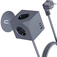Forrlite Steckdosenleiste PD20W mit Magnetpad 6in1 Wandsteckdose 6 Fach Mehrfachsteckdose 6-fach (Ein- / Ausschalter, USB-Anschlüsse, 3680W/16A, 1,5M Verlängerungskabel, Überlastschutzgerät, Überspannungsschutz, Schutzkontaktkupplung, Kurzschlussschutz, Kinderschutz), Steckdosenleiste mit 3 USB Typ C für Büro, Hause, Grau