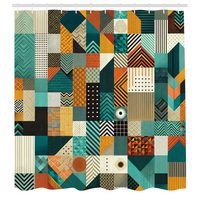 Abakuhaus Duschvorhang Moderner Digitaldruck mit 12 Haken auf Stoff Wasser Resistent Breite 175 cm, Höhe 180 cm, Geometrisch Patchwork Quadrat Dreieck