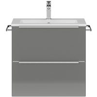 Karen Waschtisch-Set Waschtisch mit Unterschrank Lara, (Komplett-Set, Standartmäßig 2-Teilig (Unterschrank, Раковини), Optionaler Hochschrank, 2-St., Unterschrank mit Schubladen), Minimalistisch, Geradlinig, Matt-Beschichtung, Softclose, Griffleisten