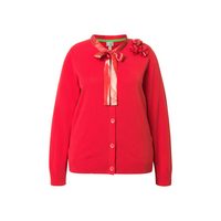 Ulla Popken Strickjacke Strickjacke Satinblüten Rundhals Langarm