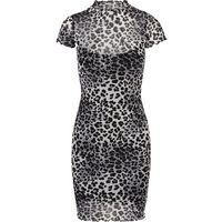 Buffalo Maxikleid mit Animalprint, Schlitz und Volant, Flügelärmel, Druckkleid