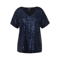 Ulla Popken T-Shirt Pailletten-Shirt Oversized V-Ausschnitt Halbarm