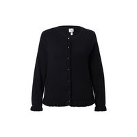 Ulla Popken Strickjacke Strickjacke Rüschen Knopfleiste Rundhals Langarm