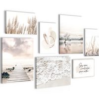 Novart Wandbild Strand Meer Leuchtturm Wohnzimmer Зображення Set Blau Beige, 7Teilig