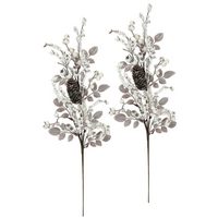 I.GE.A. Kunstzweig Beerenzweig mit Zapfen geeist Beeren, Höhe 72 cm, 2er Set Künstlicher Zweig Blume Weihnachtsdeko Dekozweig Dekoration