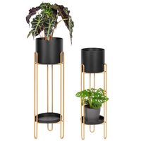 en.casa Підставка для квітів (Set, 2er), »Mol« Blumenkübel Pflanzenständer Pflanztopf Metall gold/schwarz