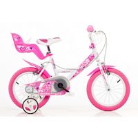 Dino Kinderfahrrad Mädchenfahrrad 14 Zoll, 1 Gang, mit Stützrädern, Korb und Puppensitz