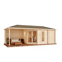 Alpholz Gartenhaus Holz 5-Eck Liwa mit Anbau, BxT: 714x302 cm, in Naturbelassen mit 28mm Wandstärke