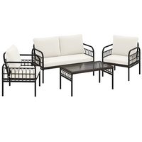 COSTWAY Balkonset, (4 TLG), 4 Personen, 2 Stühle, Bank & Glastisch, Metall