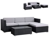Juskys Gartenlounge-Set Manacor, (Gartenlounge), Polyrattan Gartenmöbel-Set mit Garten-Sofa, Garten-Tisch und 2 Hocker