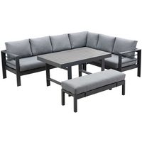 Ragnarök Möbel-Design Gartenlounge-Set Dining Lounge Wieland XL, (Set, 1 Ecklounge, 2x Hocker, 1x Hochlehner Sessel, Alu, Polyrattan), Sitzpolster ca. 16 cm dick