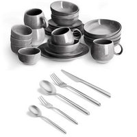 Springlane Geschirr-Set SPRINGLANE Geschirrset Misty Cliff 24-tlg. inkl. Besteck Set 20-tlg. (24-tlg), 4 Personen, Steingut (Geschirr), Edelstahl (Besteck), spülmaschinenfest