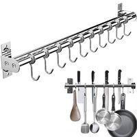 SURFOU Hakenleiste Küche Doppelte Edelstahlstange Küchenleiste mit 12 Haken &Messerhalter, (Hängeleiste Küchenreling, Edelstahl Doppelrohr, Küchenhakenleiste, Multifunktionale Hängeschiene mit Topfdeckel- & Messerhalter - 60 cm Topfi Topfdeckelhalter, Hakenleiste Küche Ohne Bohren, einfache Montage per Klebepad oder Schrauben, küche organizer), Tragfähig bis über 10 kg, Rostfrei und langlebig