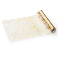 partydeco Вузькі скатертини, Вузькі скатертини Organza 9m x 36cm Blumenmuster, creme / gold