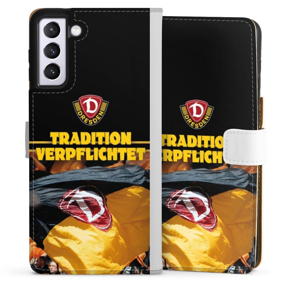DeinDesign Handyhülle SG Dynamo Dresden Fanartikel SGD Tradition Verpflichtet Dynamo Dresden, Samsung Galaxy S21+ 5G Hülle Handy Flip Case Wallet Cover