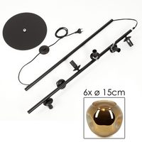 hofstein Hängeleuchte Hängelampe aus Metall/Riffelglas in Schwarz/Goldfarben/Klar, ohne Leuchtmittel, Leuchte im Retro/Vintage-Design m. Glasschirmen (15,20,25,30cm), E27