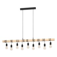 EGLO Hängeleuchte TOWNSHEND Hängelampe, Stahl und Holz, E27, IP20, Esszimmerlampe, Lampe, ohne Leuchtmittel, Pendellampe, L15 x B10 x H110 cm, braun, schwarz, 9X60W exkl.