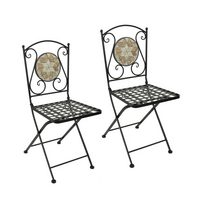DEGAMO Garten-Essgruppe SIENA, (3-tlg), 2x Klappstuhl und 1x Tisch rund 60cm, Mosaik-Dekor grau, mit Polstern