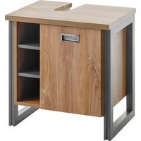 Home affaire Badmöbel-Set Detroit, Bad im Industrialdesign, 2-teiliges Badezimmer, (Set, 2-St), Waschbeckenunterschrank und Spiegel, holzfarben, mit offenen Fächern