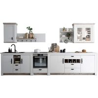 Lomadox Wohnwand FERNA-61, (7-St), Landhaus und Couchtisch Pinie weiß und Oslo dunkel Nb. 330x201x44 cm