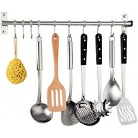 Refined Living Hakenleiste Edelstahl Küchenreling mit 12 Haken, Wandmontage, Bad Hakenleiste, (Edelstahl Hakenleiste, Wandhaken Küche, Hängeleiste Haken, Hakenleiste Wand, Küchenutensilienhalter, Küchenhaken mit Haken, Utensilienhalter Küche, Küchenhelfer Aufbewahrung, 1 St., Rostfrei, langlebig,mit 12 bewegliche Haken,Einfache Wandmontage), für Küche,Badezimmer,Balkon,Garage,Waschküche, Büro,Schlafzimmer