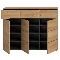 Beautysofa Eckkommode CAYA C‑12, 3 Türen, 2 Innenböden, Artisan Eiche/Schwarz, Soft-Close, optional Metallfüße, Stauraumlösung