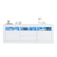 REDOM Lowboard Moderner Hochglanz-TV-Schrank mit LED-Beleuchtung (TV-Ständer für 70-Zoll-Fernseher, 3 offenen Fächern, 2 Türen, 2 Schubladen), mit LED-Beleuchtung