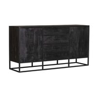 HAUSS SPOLE Sideboard Esszimmerschrank Fischgrätenmuster, geschnitzte Tür, schwarz (Esszimmerschrank mit einzigartigem Geometrie-Design und Antikipp-Schutz – Moderner Aufbewahrungsschrank mit verstellbaren Trennwänden für Wohnzimmer und Esszimmer – Robuste MDF-Struktur und Metallbeine, 120×35×78cm)