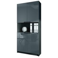 Vladon Highboard Metro (Highboard, mit 4 Türen, 2 Schubladen und 1 offenem Fach), Weiß Hochglanz/Grau Hochglanz (103 x 123 x 38 cm)