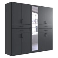 freiraum Drehtürenschrank Taiga 4 Schübe, 9 Türen, Spiegel, Graphit - 225x208x58cm (BxHxT)