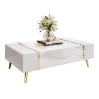 Merax Couchtisch hochglanz Sofatisch Beistelltisch mit Goldakzenten (1-St), Wohnzimmertisch mit 2 Schubladen und goldfarbenen Metallfüßen,B:100cm