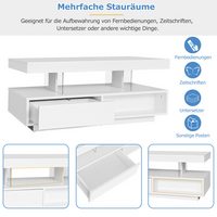 COSTWAY Couchtisch, LED, Hochglanz, 20 Farben einstellbar, mit Stauraum, Weiß