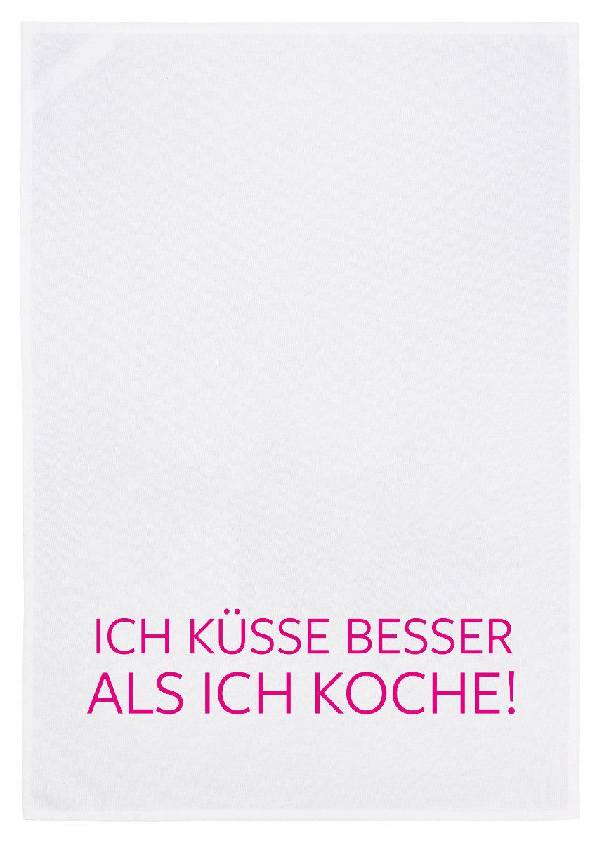 Geschirrtuch - ICH KÜSSE BESSER ALS ICH KOCHE in neon pink Diese Geschirrtücher sind nicht nur funktional sondern auch ein Hingucker in jeder Küche. Mit dem Material aus 100% Baumwolle ist das Geschirrtuch von 17;30 besonders saugstark und trocknet fusselfrei. Verschmutzungen können sie einfach in der Waschmaschine bei bis zu 40° entfernen; es ist trocknergeeignet und bügelbar. Wir bieten Ihnen viele verschiedene Motive mit handgemachtem Siebdruck - von schlicht bis farbenfroh, mit klassischen Küchenmotiven bis hin zu ausgefallenen und humorvollen Sprüchen. Damit wird jedes Spülen zu einem spaßigen Erlebnis. Ihre Vorteile auf einem Blick: 50x70cm 100% Baumwolle Handbedruckt in Hamburg / Siebdruck mit witzigem Aufdruck Besonders gut geeignet ist das Geschirrtuch als still- und humorvolles Geschenk in einem - einzeln oder als Ergänzung zu einem Geschenk oder Geschenkkorb.
