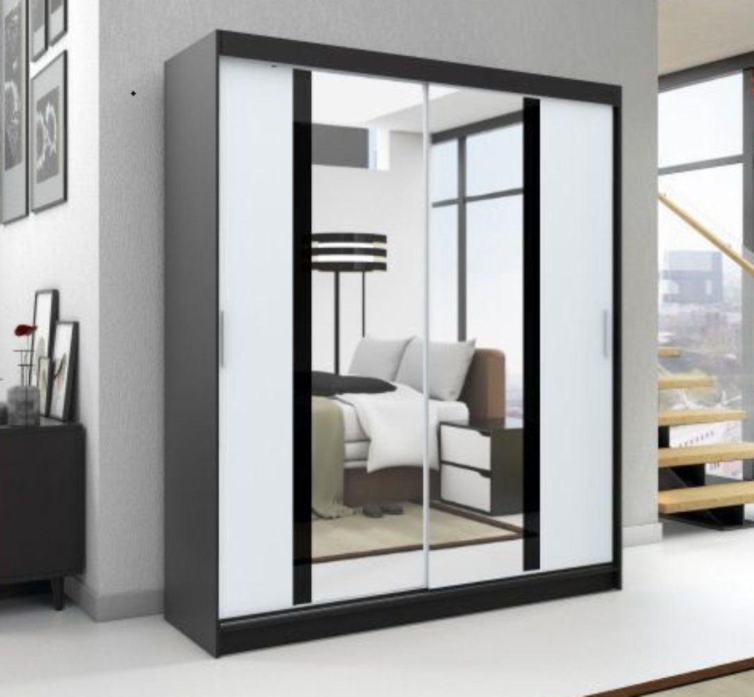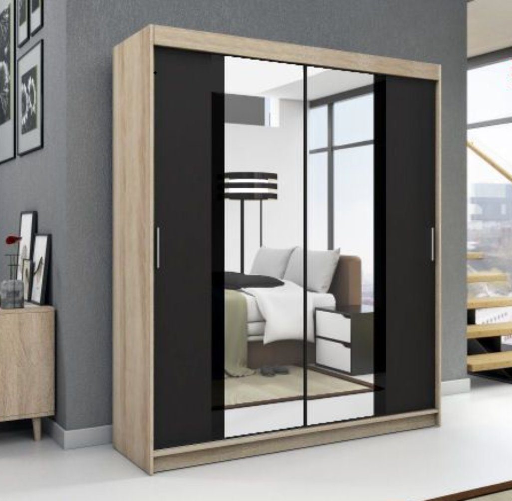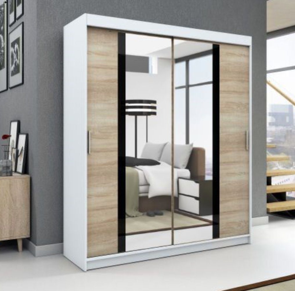 Der moderne 2-türige Kleiderschrank mit zwei Spiegeln ist die ideale Lösung für jedes Zuhause, das elegantes Design mit praktischer Funktionalität kombiniert. Der Schrank ist in drei verschiedenen Größen erhältlich (120 cm, 140 cm, 180 cm) sodass Sie das Modell auswählen können, das perfekt in Ihr Zimmer passt. Mit einer praktischen Kleiderstange und sechs Regalen bietet der Schrank ausreichend Platz für Ihre Kleidung und Accessoires. Die beiden Spiegel sorgen für praktische und stilvolle Ergänzungen, die den Raum optisch vergrößern.