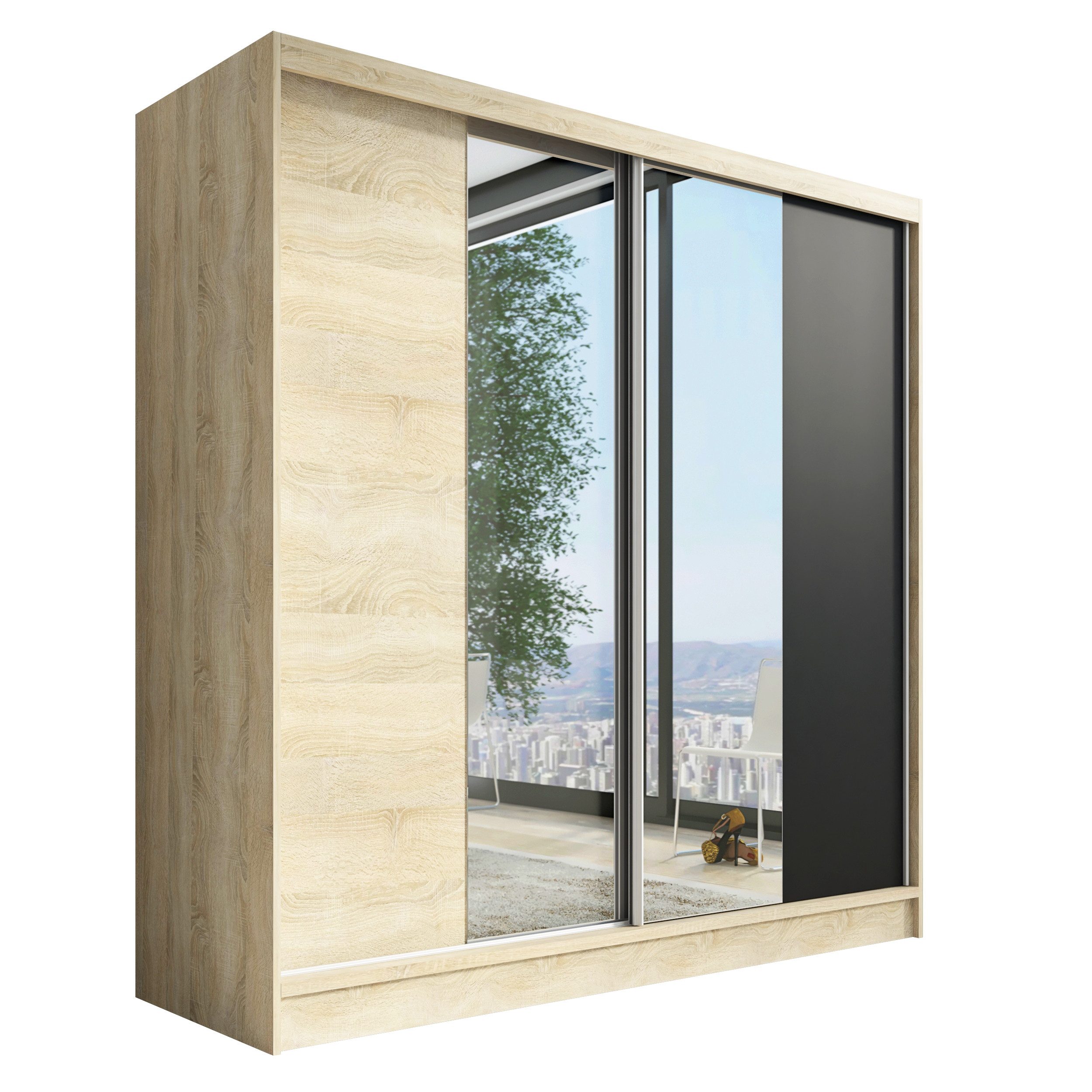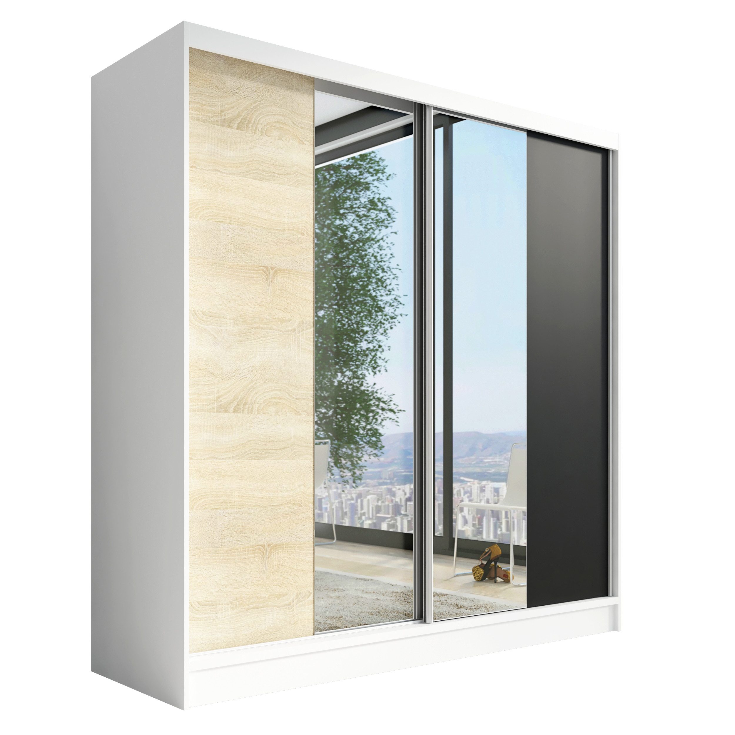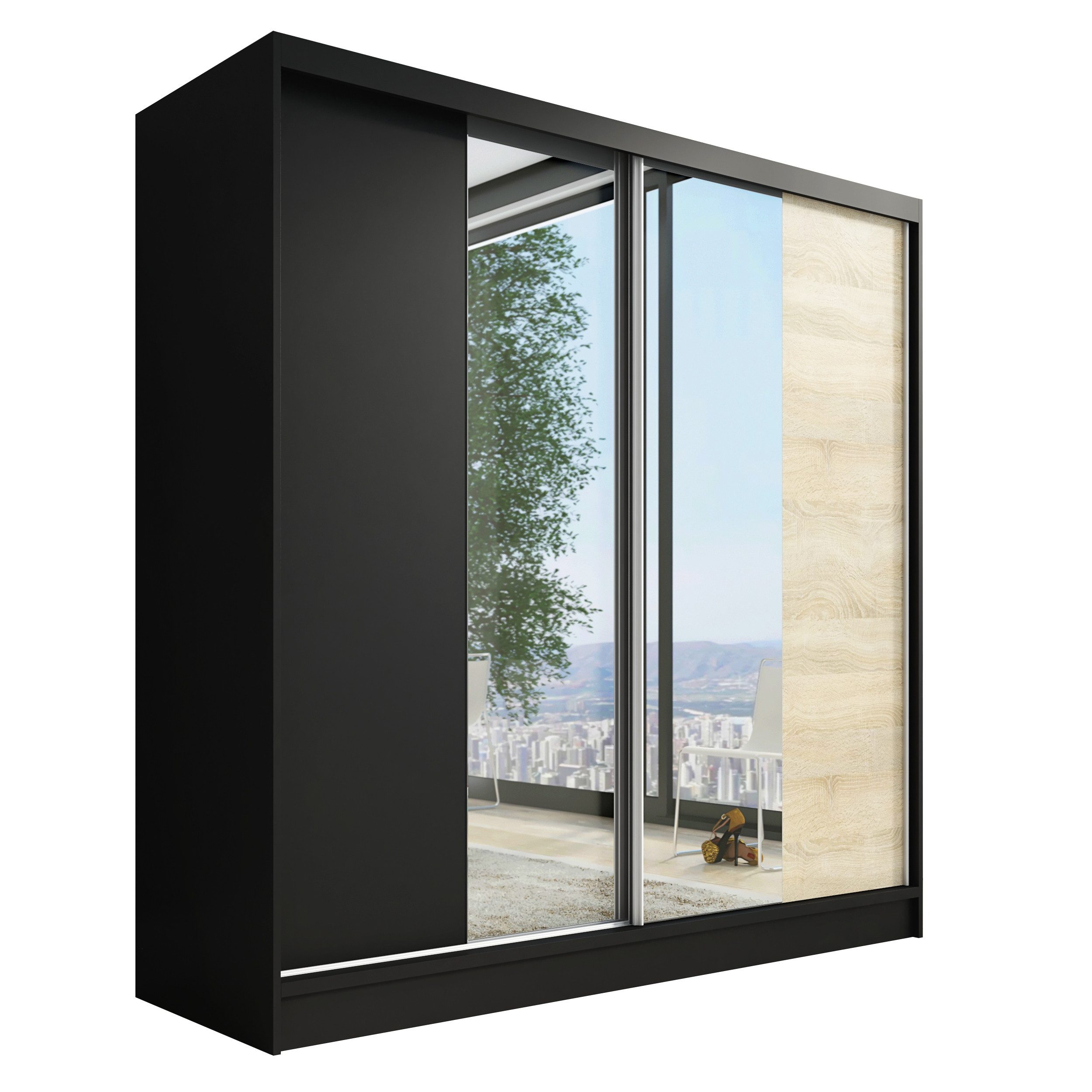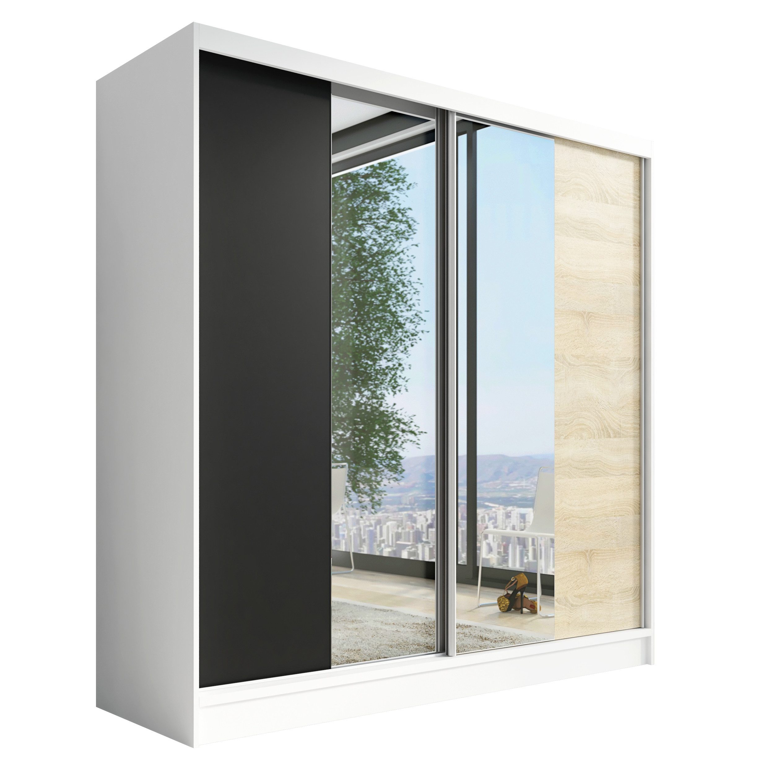 • Verschiedene Größen: Der Schrank ist in drei verschiedenen Breiten (200 cm) erhältlich, sodass Sie die perfekte Розмір für Ihr Schlafzimmer oder Ihren Raum wählen können.